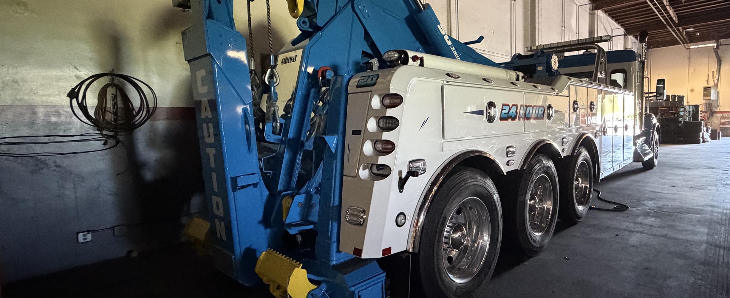 Heavy duty towing truck with 4 axels, virtually anything of any size and weight vehicle or machine.